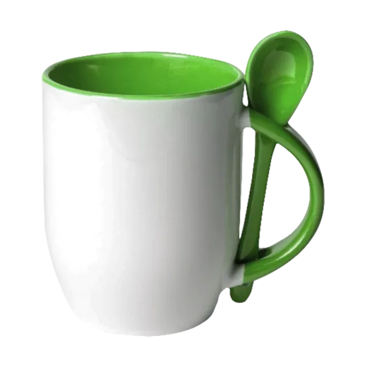 TAZA DE CER. COLOR INTERIOR Y CUCHARA 11 OZ VERDE LIMÓN P/SUB. COLOR MAKE.